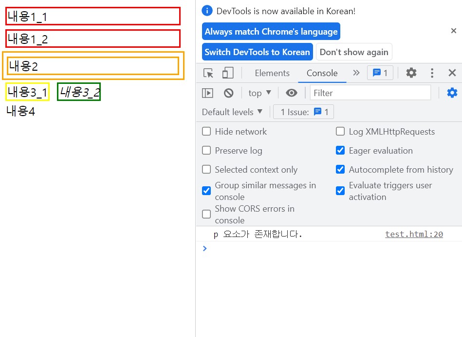 console.log("p 요소가 존재합니다.");